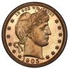 This superb gem Proof-67 Plus Barber quarter from the Denali Collection is one of the finest certified by PCGS, with a population of 4 and four finer. As seen by many other Denali Collection coins, light cameo contrast and subtle toning grace the devices and fields of the coin. There are very few minor distractions which is typical of a 67+ grade.