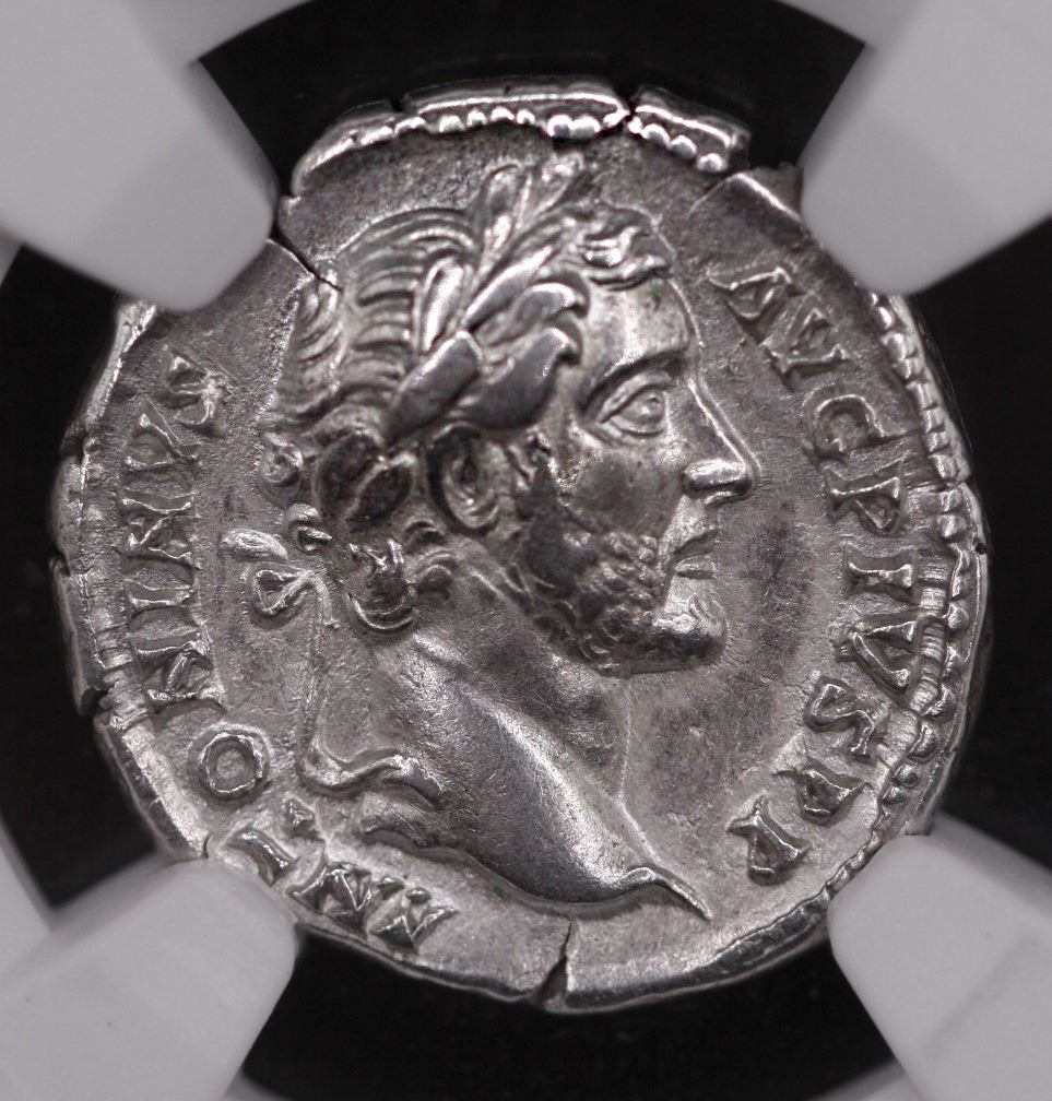 Antoninus Pius. 138-161 AD. AR Denarius, Rome mint. Laureate head right / Concordia standing left holding patera and scepter. RIC III 129.