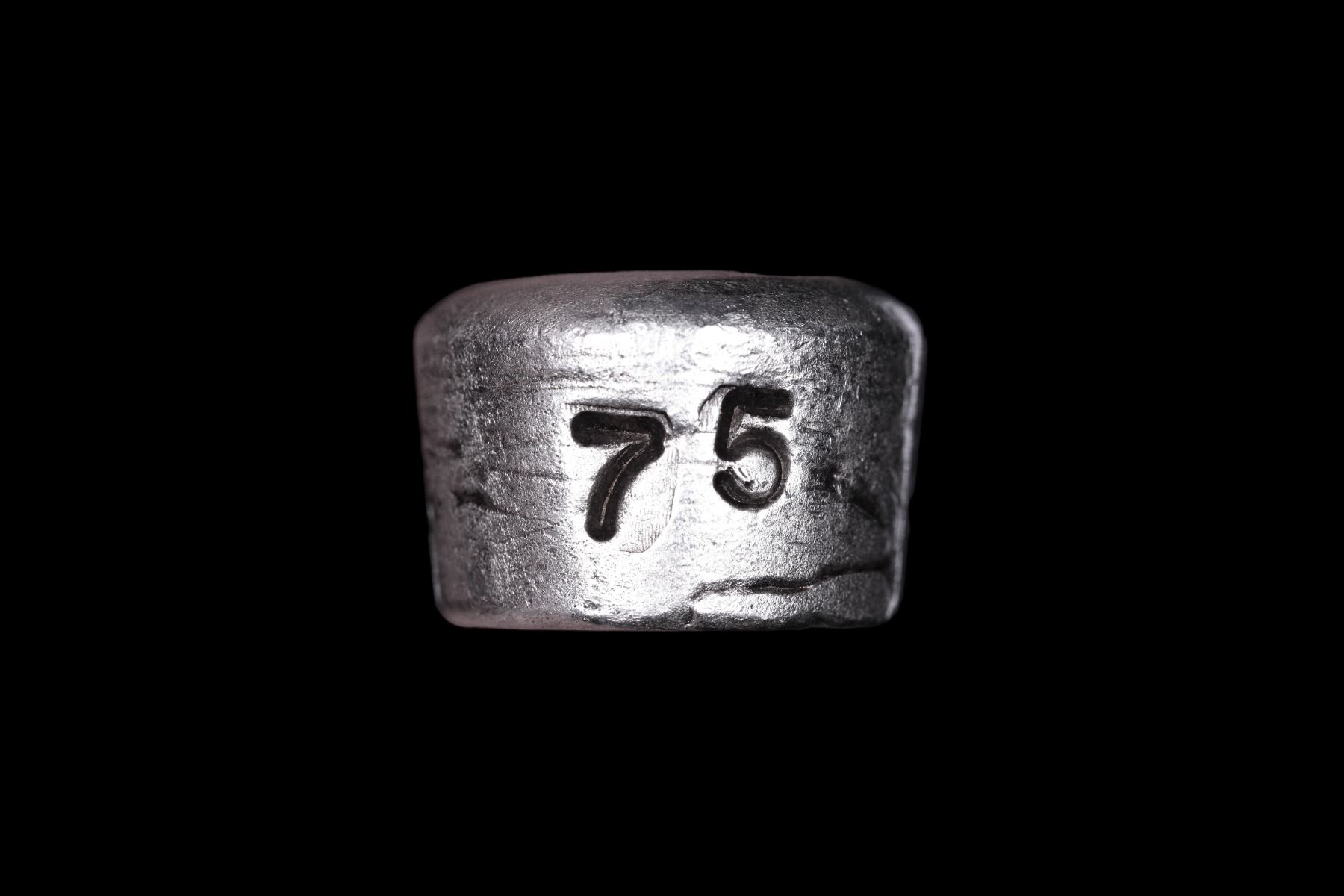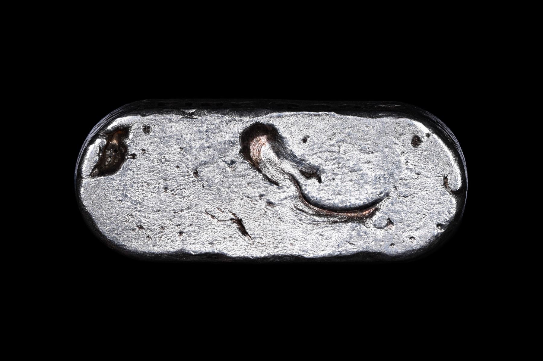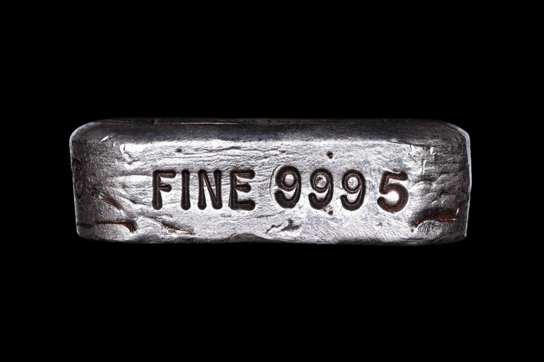 This is a very rare pour by the Northwest Refiners in Idaho. The company was in business between the 1960s and 1981, and produced few pours with this company stamp. Bars stamped Bunker Hill were produced in sizing from one ounce to 100 ounces. The present item for auction is a bright silver pour, uncleaned, with the Bunker Hill logo prominently featured. It weighs 2.55oz (stamped),and has the number 75 on one side.