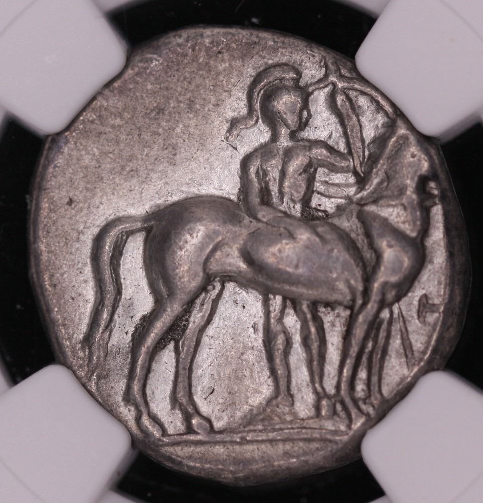 CALABRIA, Tarentum. AR Stater (Nomos). ca. 280 B.C. NGC Choice VF. Strike: 3/5, Surface: 4/5.