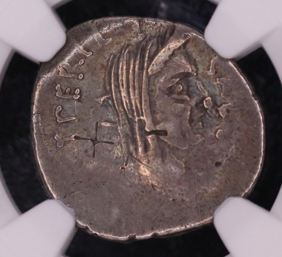 ROMAN IMPERATORIAL. Julius Caesar. P. Sepullius Macer. AR Denarius. ca. Feb.-Mar. 44 B.C. NGC Choice