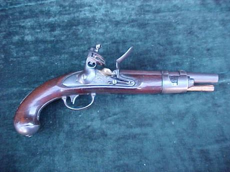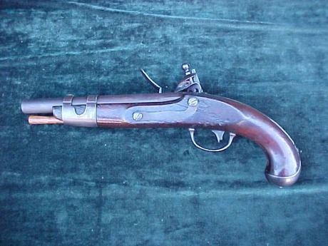 A Fine U.S. Military Model 1816 Flintlock Martial Pistol by; 'S. (Simeon) NORTH, MIDLtn, CONN', c. 1816-1820. 9. 1/8", .54 cal. round steel barrel w/arsenal proofs; "US" and "P". Original flint. Stock has a clear visible cartouche stamped on the left side of stock just behind the side plate; is solid w/light scratches and dings from years of service. Regulation steel furniture. 15.75" overall length. In good working order.
